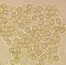 Conidiospores of Trichoderma aggressivum, Diameter approx. 3µm