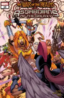 Bunn stated that he originally pitched the idea of Asgardians of the Galaxy in 2015, but had to wait for the right time, which came after the events of Infinity Countdown. Bunn said that he was inspired by classic Thor comics, the works of Jim Starlin, films like Thor: Ragnarok, Guardians of the Galaxy, and Star Wars, and included a number of "touchstones" ranging from Star Trek to Firefly in his pitch.[4] Bunn also stated that he did not view the Asgardians of the Galaxy as a replacement for the Guardians of the Galaxy but wanted to capture the fun of that series saying, "In this story, a group of Asgardians is drawn into an intergalactic quest to stop a terrible villain, from unleashing something terrible upon the universe. For various reasons, though, this group of Asgardians must work without the knowledge of their peers."[4] The series concluded after 10 issues with the "War of Realms" crossover event.