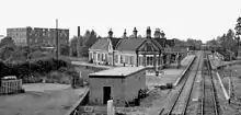 The original Ashchurch station was a stop on the Birmingham and Gloucester Railway, authorised in 1836, and whose central section from Bromsgrove to Cheltenham, including Ashchurch, was opened on 24 June 1840 (the line was open throughout a few months later).[2] It subsequently became part of the Midland Railway, later the London, Midland and Scottish Railway during the Grouping of 1923, and finally passed to the London Midland Region of British Railways on nationalisation in 1948. It was then closed by the British Railways Board in November 1971.[3]