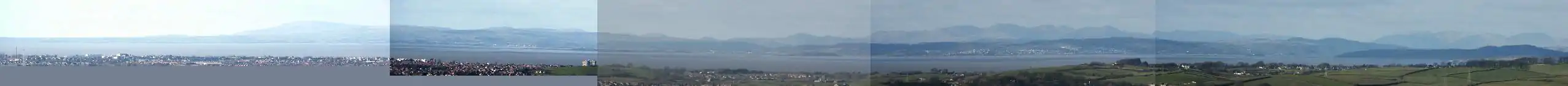 The Ashton Memorial in Williamson Park, Lancaster can be seen from the M6 motorway, Black Combe in the Lake District and from many miles out in the Irish Sea on days of good visibility.
