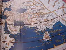 The term "Asia" is believed to originate in the Bronze Age placename Assuwa (Hittite: 𒀸𒋗𒉿, romanized: aš-šu-wa) which originally referred only to a portion of northwestern Anatolia. The term appears in Hittite records recounting how a confederation of Assuwan states including Troy unsuccessfully rebelled against the Hittite king Tudhaliya I around 1400 BCE.[39][40][41] Roughly contemporary Linear B documents contain the term asiwia (Mycenaean Greek: 𐀀𐀯𐀹𐀊, romanized: a-si-wi-ja), seemingly in reference to captives from the same area.[42][43]