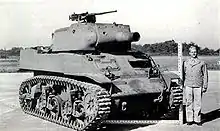 German and Soviet assault guns introduced during World War II usually carried their main armament in a fully enclosed casemate rather than a gun turret.[6] Although this limited the field of fire and traverse of the armament, it also had the advantage of a reduced silhouette and simplified the manufacturing process.[6] The United States never developed a purpose-built assault gun during the war, although it did modify preexisting armored fighting vehicles for that role, including the M4 Sherman (as the M4(105)), the M5 Stuart (as the M8 Scott), and the M3 half-track (as the T19 Howitzer Motor Carriage).[7] The classic assault gun concept was largely abandoned during the postwar era in favor of tanks or multipurpose tank destroyers attached to infantry formations, which were also capable of providing direct fire support as needed. In the United States and most Western countries, the assault gun ceased to be recognized as a unique niche, with individual examples being classified either as a self-propelled howitzer or a tank,[8] one exception being Sweden, which continued to develop casemate assault guns post-war, such as the Infanterikanonvagn 72, all the way into the 1960s before settling on a turreted design in 1968, becoming the Infanterikanonvagn 91.[9] The Soviet Union continued funding development of new assault guns as late as 1967, although few of its postwar designs were adopted in large numbers.[10] In Soviet and Eastern European armies, the traditional assault gun was primarily superseded by tank destroyers, such as the SU-100, which is capable of supporting either infantry or armor.[8] Since the 1980s, the multi-purpose assault gun concept has seen a resurgence, mainly in the form of turreted wheeled designs, such as the South African Rooikat and Italian Centauro. Today, modern assault guns include the Japanese Type 16 maneuver combat vehicle and the American M1128 Stryker and M10 Booker.
