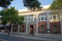 The Astoria Center was designed by architect Louis Allen Abramson as one of the earliest synagogues in Queens. The building features a brick façade, two stories tall, and five bays wide. The trim is cast stone, and features double-height Ionic piers flanking round-arched windows. The piers support an entablature and are topped by a balustrade. Its round-arched entrance is topped with a cartouche, within which is inscribed a Star of David.[2]