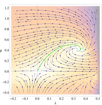 - ↑ The contact to perturbation theory is established in: Niedermaier, Max (2009). "Gravitational Fixed Points from Perturbation Theory". Physical Review Letters. 103 (10): 101303. Bibcode:2009PhRvL.103j1303N. doi:10.1103/PhysRevLett.103.101303. PMID 19792294.