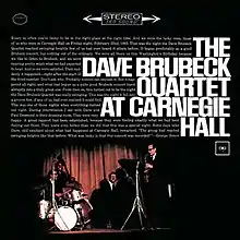 At Carnegie Hall is a jazz live album by the Dave Brubeck Quartet. It was recorded at the famed Carnegie Hall in New York City on Friday, February 22, 1963. Critic Thom Jurek described it as "one of the great live jazz albums of the 1960s".[1] Critic Jim Santella wrote, "This is timeless music from a classic ensemble. Goosebumps are guaranteed."[3]