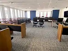 After selling its Midtown Atlanta building in 2020,[16] the Law School relocated to Peachtree Center in Downtown Atlanta.[17] After a multi-floor construction project, the Law School took possession of its new campus on August 6, 2021. It is now housed in One Marquis Tower and comprises almost 60,000 square feet of classroom and office space, including a law library and courtroom. The construction project was completed in less than 24 weeks.[18]