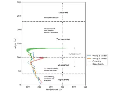 - ↑ Slipski, M.; Jakosky, B. M.; Benna, M.; Elrod, M.; Mahaffy, P.; Kass, D.; Stone, S.; Yelle, R. (2018). "Variability of Martian Turbopause Altitudes". Journal of Geophysical Research: Planets. 123 (11): 2939–2957. Bibcode:2018JGRE..123.2939S. doi:10.1029/2018JE005704. ISSN 2169-9100.