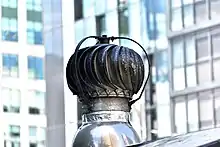 A powered attic ventilator, or attic fan, is a ventilation fan that regulates the heat level of a building's attic by exhausting hot air. A thermostat is used to automatically turn the fan off and on, while sometimes a manual switch is used. An attic fan can be gable mounted or roof mounted. Additional vents are required to draw in the fresh air as the hot air is exhausted. Attic fans are typically used in warmer months, when temperatures in an attic can exceed 120 °F (49 °C). A fan may be installed in an attic for the different purpose of cooling a whole house, venting hot air out via the attic; such fans are often called whole-house fans.