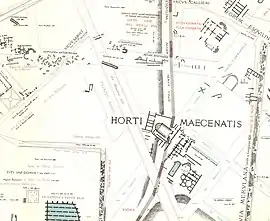 The Gardens of Maecenas, or Horti Maecenatis, constituted the luxurious ancient Roman estate of Gaius Maecenas, an Augustan-era imperial advisor and patron of the arts. The property was among the first in Italy to emulate the style of Persian gardens.[1] The walled villa, buildings, and gardens were located on the Esquiline Hill, atop the agger of the Servian Wall and its adjoining necropolis, as well as near the Horti Lamiani.