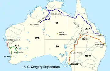 - 1 2 Waterson, D. B. (1972). "Gregory, Sir Augustus Charles (1819–1905)". Australian Dictionary of Biography. National Centre of Biography, Australian National University. ISSN 1833-7538. Retrieved 20 June 2012.