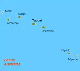 | Major islands | Tupua'i, Rūrutu, Ra'ivāvae, Rapa Iti |