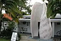 | The Big Prawn | West Ballina | 1989 | 6×9 m (20×30 ft) | On 24 September 2009, Ballina Shire Council voted to allow the demolition of the Big Prawn,[31] but this permission was never acted upon. Bunnings purchased the site in 2011 and refurbished the Prawn as part of the redevelopment. The prawn now sits on a stand next to the entrance of the Bunnings Warehouse carpark.[32][33] | ![]() |