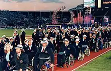 The Australian team consisted of 166 athletes. This was much smaller than other countries such as the US, Germany, Britain and Spain.[4] The Australian Sports Commission provided financial support to the Australian Paralympic Federation to make it possible for all athletes to travel to the games.[10] The team mascot, Banjo, was unveiled in May.[11] The Chef de Mission was George Dunstan and the flag bearer at the opening ceremony was Libby Kosmala.