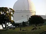 The Australian Astronomical Observatory (AAO), formerly the Anglo-Australian Observatory, was an optical and near-infrared astronomy observatory with its headquarters in North Ryde in suburban Sydney, Australia. Originally funded jointly by the United Kingdom and Australian governments, it was managed wholly by Australia's Department of Industry, Innovation, Science, Research and Tertiary Education.[1][2] The AAO operated the 3.9-metre Anglo-Australian Telescope (AAT) and 1.2-metre UK Schmidt Telescope (UKST) at Siding Spring Observatory, located near the town of Coonabarabran, Australia.