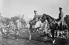 Conrad warned the Bulgarian High Command that unless local Bulgarian commanders abstained from interfering with the Austro-Hungarian administration, a conflict with his troops would be inevitable.[73] On 15 March, the Austro-Hungarians issued an order to secure Novi Pazar, and prepared to add Kosovska Mitrovica to their governorate.[74] The German chief of staff, General Erich von Falkenhayn, ordered Mackensen to mediate between the two parties. Mackensen visited Sofia in person to meet Ferdinand and Prime Minister Vasil Radoslavov. The proposed German compromise was accepted and an agreement on a demarcation line was signed between the Austro-Hungarian and Bulgarian high commands on 1 April 1916.[74]