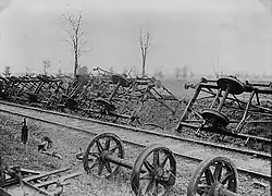 Mass killings took place in numerous towns in northern Serbia. On 17 August 1914, in the Serbian town of Šabac, 120 residents—mostly women, children and old men, who had previously been locked in a church—were shot and buried in the churchyard by Austro-Hungarian troops on the orders of Feldmarschall-Leutnant Kasimir von Lütgendorf.[8] The remaining residents were beaten to death, hanged, stabbed, mutilated or burned alive.[9] A pit was later discovered in the village of Lešnica containing 109 dead peasants who were "bound together with a rope and encircled by wire"; they had been shot and immediately buried, even with some still alive.[10] Wawro writes that in Krupanj, men of the 42nd Home Guard Infantry Division, the exclusively Croat formation known as the Devil's Division,[lower-alpha 1] bashed a group of old men and boys to the ground using rifle buttstrokes and then hanged any who were still breathing.[6]