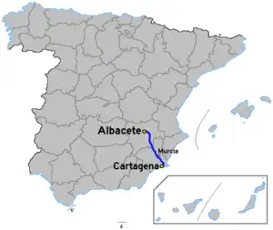 The Autovía A-30 (also called Autovía de Murcia) is a Spanish autovía which starts in Albacete and ends in Cartagena, while also passing through Murcia. It replaced most of the eastern section of the former N-301 road.