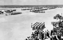 In August 1942 the United States Government closed the private flying school and took it over as a United States Army Air Forces military installation. Avenger Field was to be turned over to the Air Transport Command as a transition school for experienced airline pilots in single-engine Vultee BT-13 Valiant basic trainers. From Avenger Field, the graduates would be sent to twin-engine schools and subsequently for overseas duty as USAAF pilots.[3]
