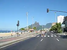Avenida Vieira Souto is a largely residential street in Rio de Janeiro. The street passes along the beach through the neighborhood of Ipanema. On its west end, after crossing Avenida Epitácio Pessoa, the street continues straight and uninterrupted into the adjacent neighborhood of Leblon, where the street takes a different name, Avenida Delfim Moreira. On its east end, the street turns to continue into the neighborhood of Copacabana, where it takes the name Rua Francisco Otaviano. Some of Rio de Janeiro's most expensive residences are found on Avenida Vieira Souto.[1] On Sundays, the half of the street near to the beach is closed to allow people to walk and ride bicycles.
