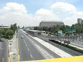 Mexico City Metrobús Line 1, inaugurated in 2005, runs on Avenida de los Insurgentes for 28.1 km, almost all of the avenue's length, from Indios Verdes to El Caminero.