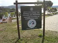 Sign next to the Azibo Reservoir beach.