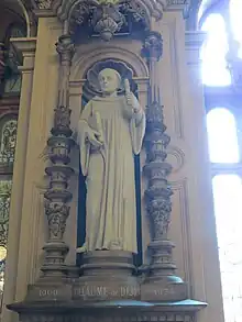 Raoul le Blanc, Viscount of Dijon, became a monk at Saint-Bénigne, then was made grand-prior of Bèze under abbot William and played a major role in the restoration of the abbey.[37] Raoul dedicated his immense fortune to entirely rebuilding the abbey, including executing two ossuaries in the chapel of the Virgin and replacing the remains of the old destroyed tombs. [38] He rebuilt the church on a larger scale, and it was dedicated in 1016 or 1018 in a ceremony arranged by Lambert de Vignory, Brunon's successor as bishop in a ceremony attended by many bishops and clergy from various provinces of France.[39] In 1018 the lord of Fouvent founded the priory of Saint-Sépulcre beside his castle, subordinate to Bèze abbey.[34]