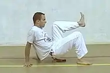 Various push kicks are common in engolo, an Angolan martial art considered the ancestor of capoeira.[9] There are several types of push kicks in engolo including: front push kick (chapa de frente), back push kick (chapa de costas), side push kick (chapa lateral), revolving push kick (chapa giratoria) and push kick from inverted position.[4][10]