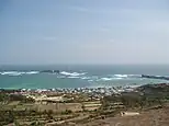 Bình Thuận has much of the borders with Lâm Đồng and Ninh Thuận are mountainous, while much of the rest of the province is relatively flat. However, there are several hills with a height of at least 200 m along the coast of the province.[1] The highest peak in the province (1548m) is in northwestern Tánh Linh District, near Lâm Đồng.[2] Phú Quý island is located around 120 km south-east of Phan Thiết. It is a separate district. There are several much smaller islands off the coast of Bình Thuận, including Câu Island (cù lao Câu) in the east, Lao Island (hòn Lao) at Mũi Né, and Bà Island (hòn Bà) in the west.[2]