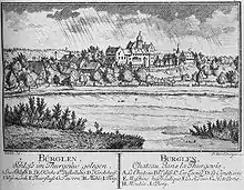 Bürglen is first mentioned in 1282-84 as Burgelon.[3] A Freiherr of Bürglen is first mentioned in 1176. By 1350, the land around the village had all been brought under a single noble and became the Herrschaft of Bürglen. Then, in 1408, the Herrschaft was acquired by the Lords of Klingenberg. The land transferred in 1443 to Marquart Brisacher from Constance and then in 1447, it went to the Baron of Sax-Hohensax. That family had owned in property in Bürglen since 1360. By 1500 they had built it up to become the center of their power. However, in 1550 they had to sell it to the Breitenlandenberg family, who, in turn, ceded it in 1579 to the city of St. Gallen. The village was managed, until 1798, by a St. Gallen appointed Vogt. The Vogt ruled over the low court of Bürglen, Uerenbohl, Guntershausen (now Guntershausen bei Berg), Heldswil, Mettlen and Istighofen and parts of Hüttenschwil and Sulgen. In addition, after 1580 it included Mühlebach (now Mühlebach bei Amriswil), followed in 1647 by Bleiken, in 1664, Hessenreuti and finally in 1665, Amriswil.[3]