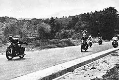 The 1970s were when the term of bōsōzoku first truly began to emerge. This was a period of time characterized by actual riots between police and many of these youth groups. The term bōsōzoku was not actually created by these biker groups, but was eventually widely adopted and used by these various groups.[5] In the 1980s and 1990s, bōsōzoku would often embark on massed rides, in which up to 100 bikers would cruise together slowly en masse down an expressway or major highway. The motorcyclists would run toll booths without stopping and would ignore police attempts to detain them. New Year's Eve was a popular occasion for the massed rides. The bikers would sometimes smash the cars and threaten or beat up any motorists or bystanders who got in the way or expressed disapproval of the bikers' behavior. Participation in the gangs peaked at 42,510 members in 1982. This made bōsōzoku the prevailing form of youth delinquency within Japan.[6]