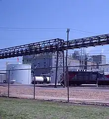 BASF bought the Wyandotte Chemical Company, and its Geismar, Louisiana chemical plant in the early 1970s.[22] The plant produced plastics, herbicides, and antifreeze. BASF soon tried to operate union-free, having already reduced or eliminated union membership in several other US plants. Challenging the Geismar OCAW union resulted in a labor dispute that saw members locked out from 1984 to 1989, and eventually winning their case. A worker solidarity committee at BASF's headquarters plant in Ludwigshafen, Germany, took donations from German workers to support the American strikers and organized rallies and publicity in support. The dispute was the subject of an academic study.[23] The union also exposed major accidental releases of phosgene, toluene and other toxic gases, these being publicized in the local media and through a video, Out of Control.[22][24] A court threw out a $66,700 fine against BASF for five environmental violations as "too small".[22]