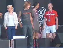 BWO (right) alongside Robyn (left) during a Swedish on-stage radio show, July 2005