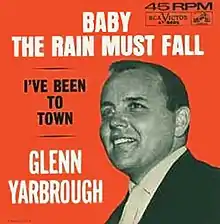 "Baby the Rain Must Fall" is a song written by Elmer Bernstein and Ernie Sheldon and performed by Glenn Yarbrough after he left the Limeliters for a solo career. In early 1965, the track reached #2 on the adult contemporary chart and #12 on the Billboard chart.[1] It also reached #3 in South Africa.[2]
