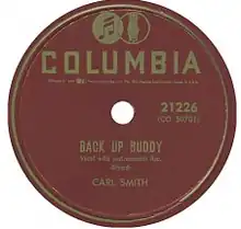 "Back Up Buddy" is a song written by Boudleaux Bryant, sung by Carl Smith, and released on the Columbia label (catalog no. 21226). In May 1954, it peaked at No. 2 on the Billboard country and western chart.[1] It was also ranked No. 17 on Billboard's 1954 year-end country and western retail chart.[2]