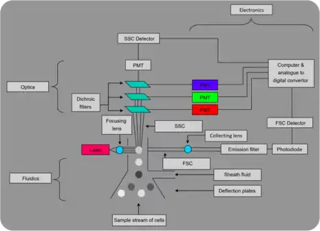 Fixation is done to not only preserve sample, but also to increase permeability of cells to stains.[24] However, most common fixation agents have the capacity to alter cells by changing certain aspects such as size, how light is scattered, autofluorescence and nucleic acids. This is problematic as flow cytometric distinction of cells relies on these qualities. Some fixatives also lead to complete loss of cells.[24] Presently, some of the agents used in the fixation process include two variations of formaldehyde (formalin and paraformaldehyde), 70% ethanol, glutaraldehyde and TCA.[33] It is presumed that the best fixation agent for protein and nucleic acids is paraformaldehyde due to its ability to swiftly enter cells.[24]