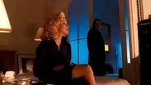 David Denby deemed the music video a "premature summation of Fincher's work in miniature", pointing out references to other works by the director: the police discovering Madonna's corpse referenced Seven (1995); the "backward-running timepiece" image of Walken's angel of death character looking at his watch became the "key visual and metaphysical idea" in The Curious Case of Benjamin Button (2008). Finally, Madonna being murdered by a seeming serial killer was a reference to both Seven and Zodiac (2007).[75] In a similar note, Vice's Raza Syed wrote that the music video "has many of the hallmarks of David Fincher's style of cinematography that would dominate much of his subsequent filmography: air-tight camerawork, brushed-metal visual palette, corporate intrigue, a palpable sense of emotional isolation... and murder".[57] White compared the Louise Oriole character to Amy Elliott Dunne from Gone Girl (2014), as both women share a "troubled antihero quality".[15] According to Mark Browning, the shot of Walken and the singer in an elevated director's chair signifies a "God-like" presence in the actor's character; the author also felt this particular shot was an intentional, tongue-in-cheek reference by Fincher to "the responsibility and pressure that comes with directing".[66] In Experiencing Music Video: Aesthetics and Cultural Context (2004), Carol Vernallis pointed out that, through "iconic imagery", the viewer can predict the fate of Madonna's character: her black dress in a dry cleaner's plastic bag alludes the body bag she will be wrapped in; the cat hissing at her suggest she's already a "ghost or figure who bears a curse"; finally, a door Madonna walks through looks like the "entrance to Hades".[76] The music video can be found on Madonna's 1999 compilation The Video Collection 93:99.[77]