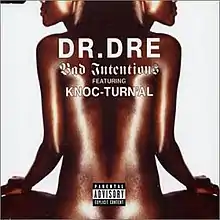 "Bad Intentions" is a single by American rapper Dr. Dre, featuring vocals from fellow rapper Knoc-turn'al, recorded for and taken from the soundtrack to the film The Wash. The song was produced by Mahogany Music and co-produced by Dre himself. It contains a sample from "Hollywood Hot" by Eleventh Hour. The single was released on November 2001 .[1] The song debuted on the UK Singles Chart at number four, staying in the charts for sixteen weeks.[2] The music video for "Bad Intentions" depicts Dr. Dre and Knoc-turn'al filming a fictional music video at a burlesque house named "Bad Intentions". Rapper Jay-Z also used the beat as a diss towards fellow rapper Nas during their feud. The video features a cameo appearance from comedian Tommy Davidson