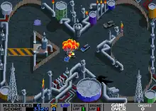 Badlands is a 1989 arcade video game published by Atari Games. It was ported by Domark under the Tengen label to the Amiga, Amstrad CPC, Atari ST, Commodore 64, and ZX Spectrum. The game is a re-themed version of Atari's previous racing games Super Sprint and Championship Sprint with the addition of vehicular combat. Badlands is set in the aftermath of a nuclear war and races around abandoned wastelands with many hazards. Three gun-equipped cars race around a track to win prizes.