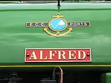 Alfred was always the wider-travelled of the two locomotives. In 1955, it spent a short period at Ponts Mill working in the china clay drier there while the regular locomotive was being serviced, the movement between Par harbour and Ponts Mill being made under its own power over British Railways tracks.[3] In 1994, it was taken to Exeter for a rail fair celebrating the 150th anniversary of railways in that city.[5] August 2002 saw it at St Blazey depot of an open day and it was steamed down the branch to Par harbour, the first time in 25 years.[4] In May 2009 it was taken to Saltash as part of the 150th anniversary of the Royal Albert Bridge.[6]