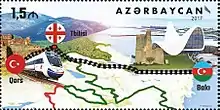 Kars–Tbilisi–Baku railway on Georgian stamp, 2013
