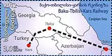 The Baku–Tbilisi–Kars (BTK), or Baku–Tbilisi–Akhalkalaki–Kars railway (BTAK), is a railway connecting Azerbaijan, Georgia and Turkey, which became operational on 30 October 2017 following several years of delays.[2] The project was originally due to be completed by 2010,[3] but was delayed to 2013,[4] 2015,[5] 2016,[6] and, following a fifth trilateral meeting in February 2016, foreign ministers of the three countries announced that the railway would finally be completed in 2017.[7]