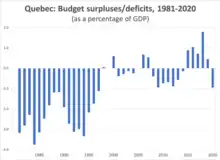 The Government of Quebec adopted the Balanced Budget Act (BBA) in 1996. The BBA prohibits a budget deficit, other than in special circumstances.[1][2]
