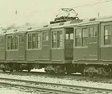 Low profile pantograph on Boston's MBTA "Blue Line" Subway Car, 1932