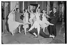 Ballets Russes continued to have an influence on fashion into the 1920s. A turning point in the relationship between ballet and fashion was Sergei Diaghilev's 1921 production of The Sleeping Beauty.[7] The ballet's use of light pastels such as lilac influenced color trends in fashion. The production's bluebird blue costumes inspired Elsa Schiaparelli to create her signature color "sleeping blue".[11] French fashion designer Jeanne Lanvin's full-skirted robe de style dresses of the mid-1920s and Madeleine Vionnet's Ballerina dress both had inspiration in the ballerina costume. According to ballet historian Ilyana Karthas, during the 1920s images of femininity were promoted in the context of athleticism, exercise, and the physical body.[11]