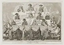 Bamber Gascoyne (1725–1791) was a Lord of the Admiralty and is represented in this cartoon as the two-faced man on the right.[1]