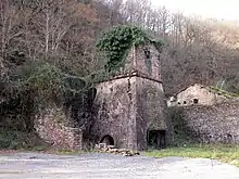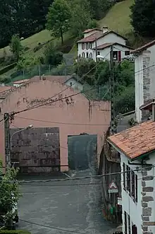[21] These remains are at the northern entrance of the village including a blast furnace. The supply canal is fed by the waters of the Nive captured upstream and turn a wheel of a blower machine which injected air at the base of the blast furnace through two nozzles. The adjacent building, still dominated by the canal, housed the forge fires and hammers to make cast iron and a splitting mill for splitting iron bars. - Houses and Farms (19th century)