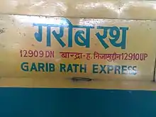 The 12909 / 12910 Bandra Terminus–Hazrat Nizamuddin Garib Rath Express is a Express train of the Garib Rath category belonging to Indian Railways – Western Railway zone that runs between Bandra Terminus and Hazrat Nizamuddin in India.