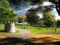 Major fires struck the downtown in 1856,[27] 1869,[28] and 1872,[29] the last resulting in the erection of the Adams-Pickering Block. In the Great Fire of 1911 Bangor lost its high school, post office & custom house, public library, telephone and telegraph companies, banks, two fire stations, nearly a hundred businesses, six churches, and synagogue and 285 private residences over a total of 55 acres (23 ha.) The area was rebuilt, and in the process became a showplace for a diverse range of architectural styles, including the Mansard style, Beaux Arts, Greek Revival and Colonial Revival,[11] and is listed on the National Register of Historic Places as the Great Fire of 1911 Historic District.