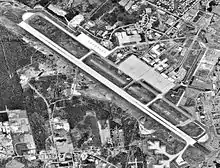 Regular air passenger service to Portland and Boston was begun in 1931 by Boston-Maine Airways, owned by the Boston and Maine and Bangor and Aroostook railroads and under contract to Pan American, which was interested in the airport as a stop on its planned intercontinental air route between the U.S. and Europe. Amelia Earhart travelled to Bangor on the first flight of Boston-Maine Airways, in which she was an investor, in 1933.[5] The airport was equipped with floodlights for night flights as early as 1937. In 1940, Boston-Maine became Northeast Airlines, which eventually merged with Delta Air Lines in 1972.