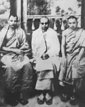In 1944, another group of eight monks were sent into exile. Their Dharma names were Pragyananda Mahasthavir, Dhammalok Mahasthavir, Subhodhananda, Pragyarashmi, Pragyarasa, Ratnajyoti, Agga Dhamma and Kumar Kashyap Mahasthavir.[4] This time they were accused of encouraging women to renounce Hinduism and writing in Nepal Bhasa. The monks were summoned before the prime minister Juddha Shamsher Jang Bahadur Rana and ordered to sign a pledge that they would stop their activities. When they refused, they were ordered out of the country.[5]